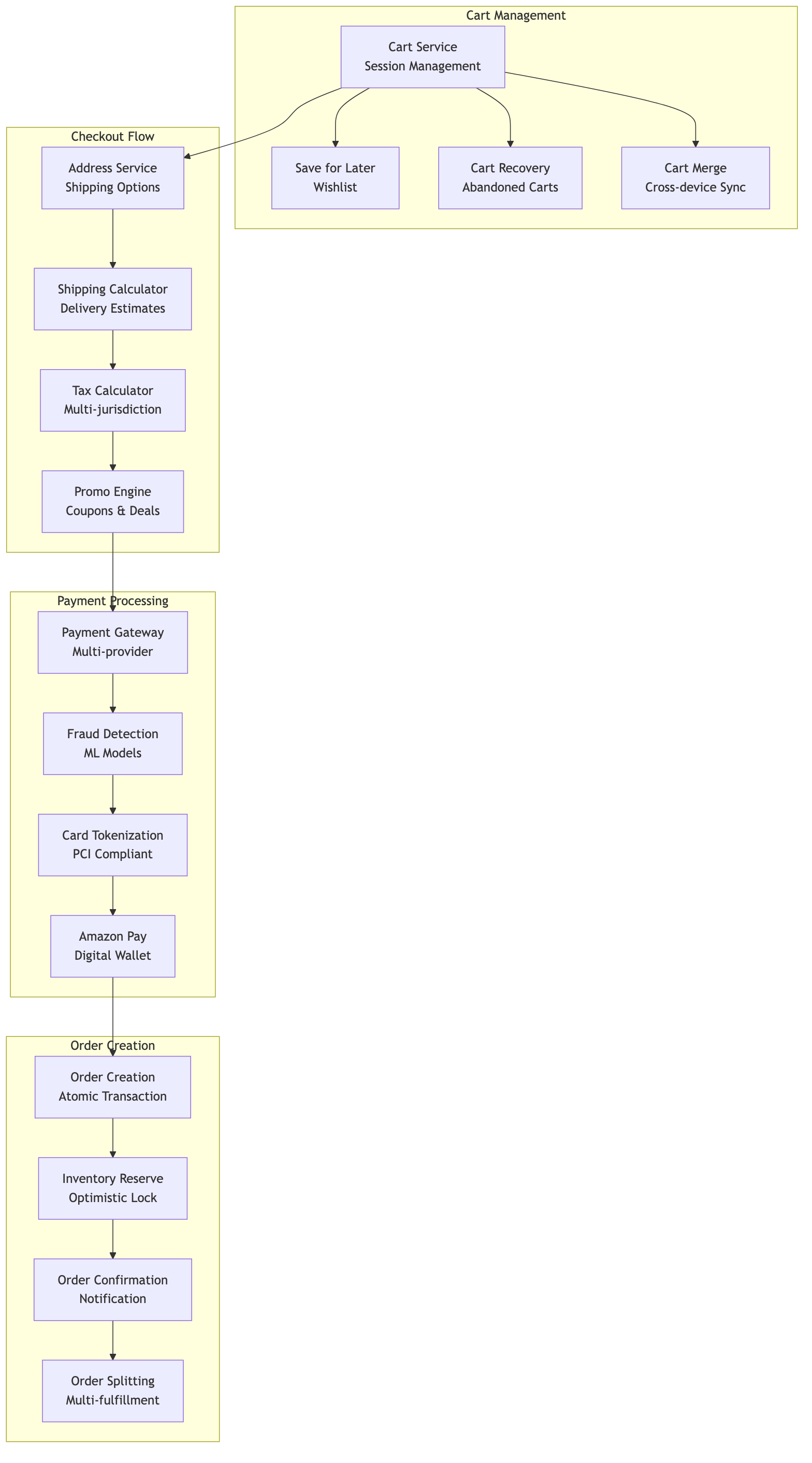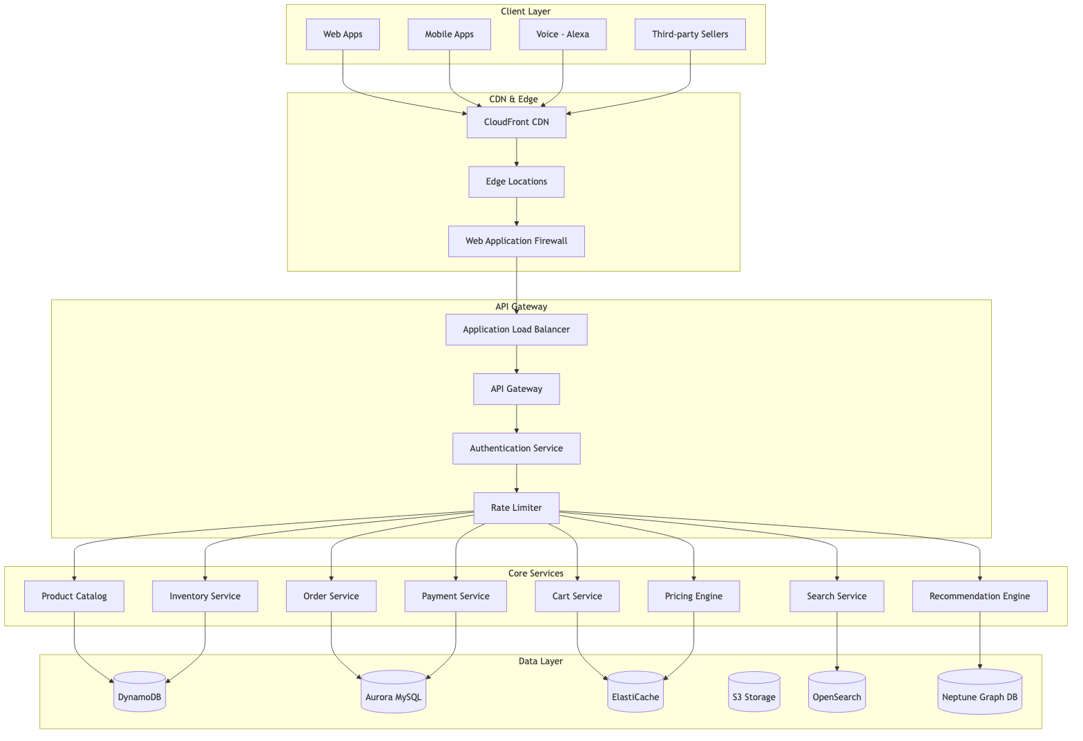 🛒 Amazon serves over 300 million active customers globally, processing billions of transactions annually. This document outlines the comprehensive architecture that enables Amazon to deliver exceptional e-commerce experiences at massive scale with 99.99% availability.