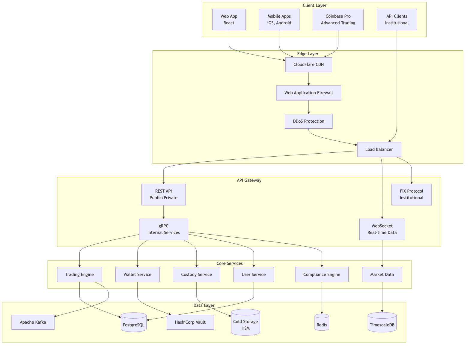 Coinbase's architecture demonstrates how to build a secure, compliant cryptocurrency exchange at scale. The combination of robust trading infrastructure, industry-leading security practices, and comprehensive compliance systems enables Coinbase to serve millions of users while maintaining regulatory trust.
