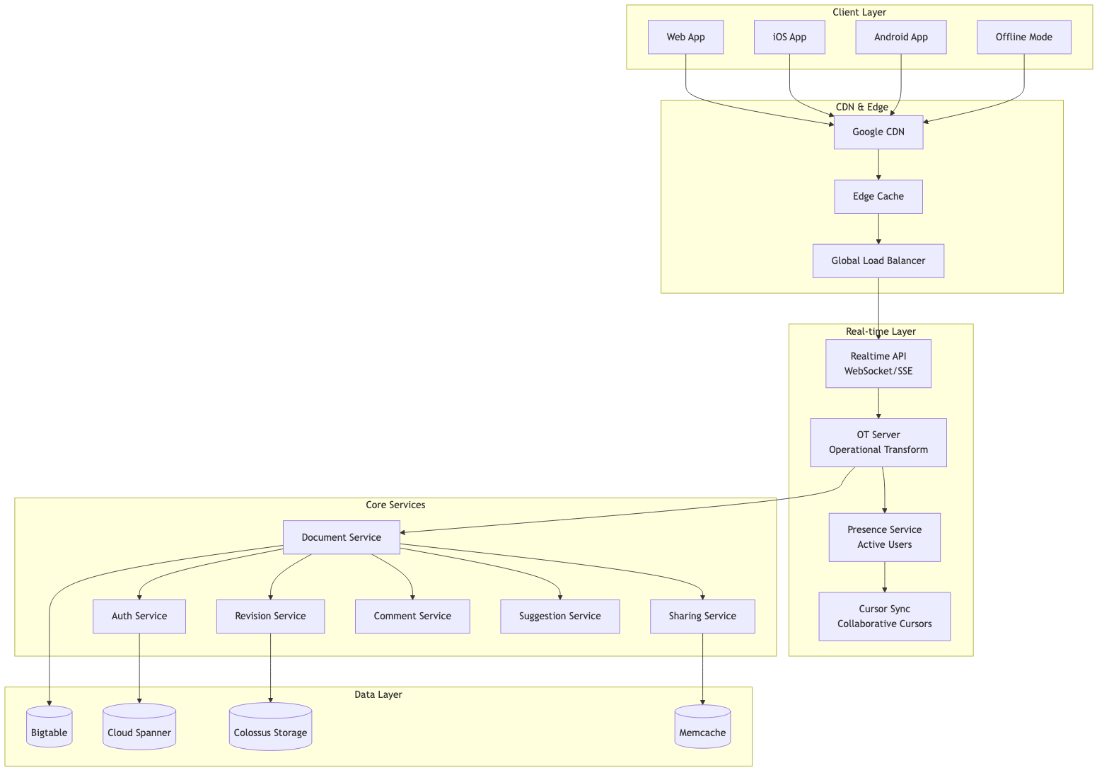 This architecture represents Google Docs' known systems and best practices. Actual implementation details may vary.