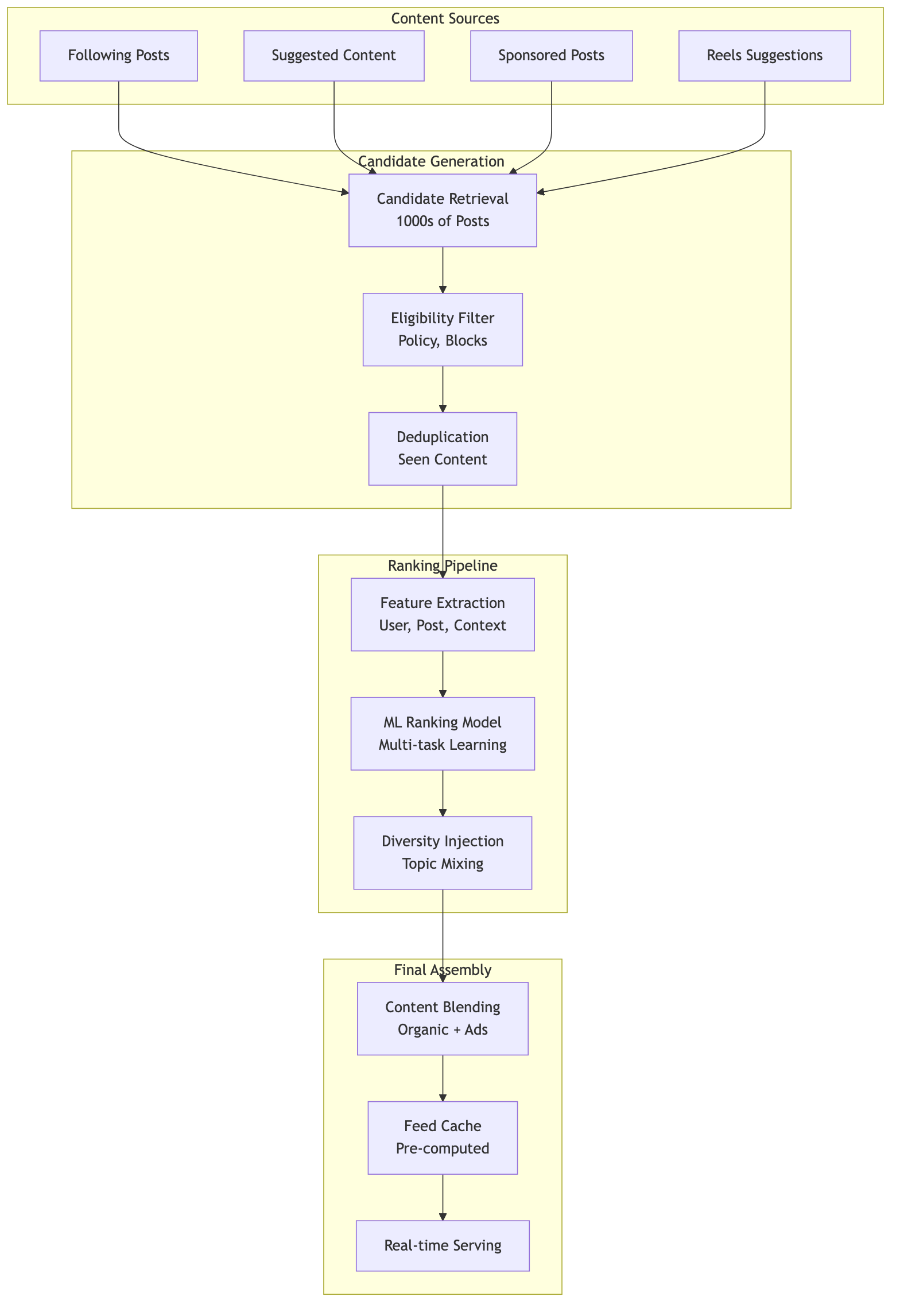 - Candidate Generation: Retrieves 1000+ potential posts