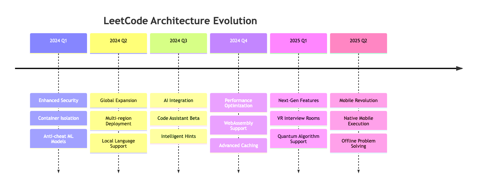 2024 Q1 Enhanced Security Container Isolation Anti-cheat ML Models 2024 Q2 Global Expansion Multi-region Deployment Local Language Support 2024 Q3 AI Integration Code Assistant Beta Intelligent Hints 2024 Q4 Performance Optimization WebAssembly Support Advanced Caching 2025 Q1 Next-Gen Features VR Interview Rooms Quantum Algorithm Support 2025 Q2 Mobile Revolution Native Mobile Execution Offline Problem Solving LeetCode Architecture Evolution 2024 Q1 Enhanced Security Container Isolation Anti-cheat ML Models 2024 Q2 Global Expansion Multi-region Deployment Local Language Support 2024 Q3 AI Integration Code Assistant Beta Intelligent Hints 2024 Q4 Performance Optimization WebAssembly Support Advanced Caching 2025 Q1 Next-Gen Features VR Interview Rooms Quantum Algorithm Support 2025 Q2 Mobile Revolution Native Mobile Execution Offline Problem Solving LeetCode Architecture Evolution