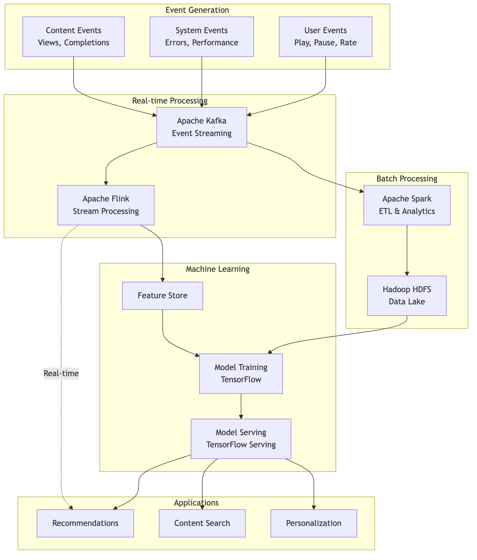 - Batch processing: Apache Spark