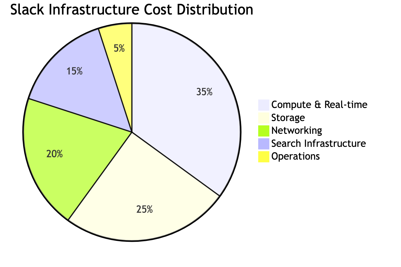35% 25% 20% 15% 5% Slack Infrastructure Cost Distribution Compute & Real-time Storage Networking Search Infrastructure Operations 35% 25% 20% 15% 5% Slack Infrastructure Cost Distribution Compute & Real-time Storage Networking Search Infrastructure Operations