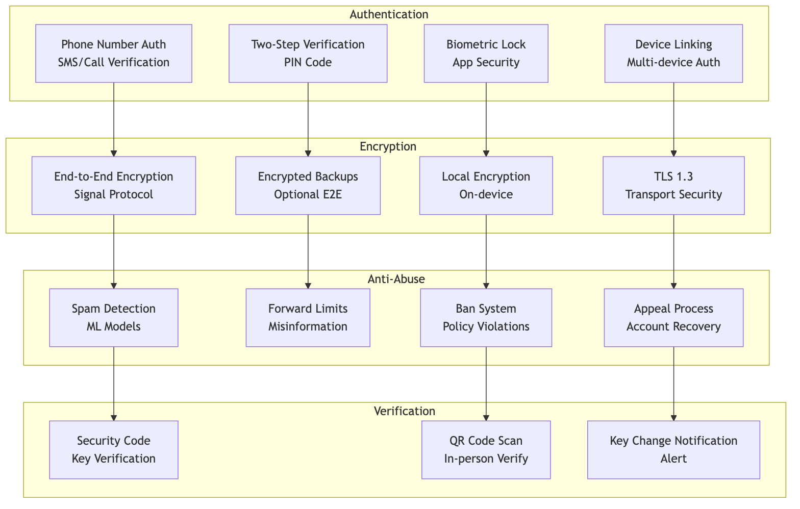 • End-to-End Encryption: Signal Protocol for all messages