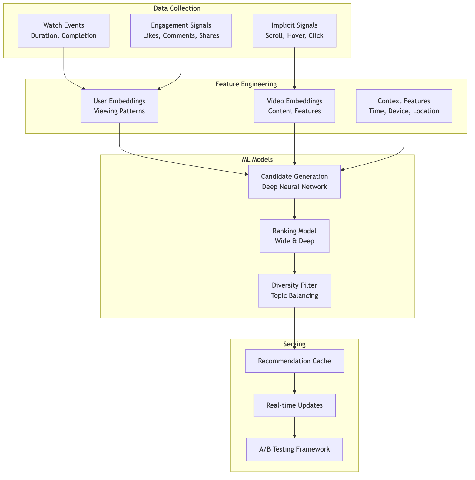 - Multi-task Learning: Balances multiple objectives (watch time, satisfaction)