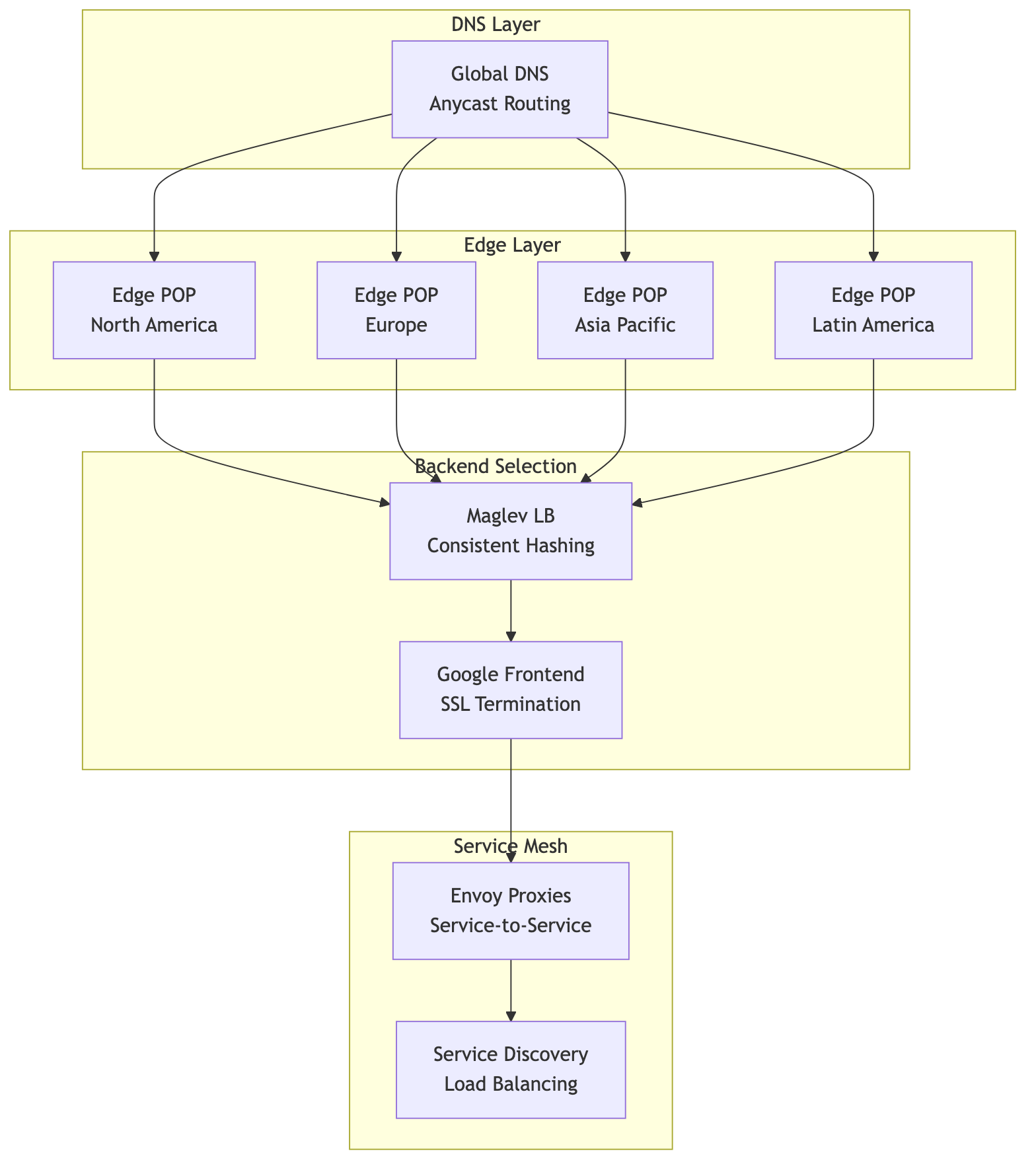 - Google Frontend (GFE): SSL termination, DDoS protection