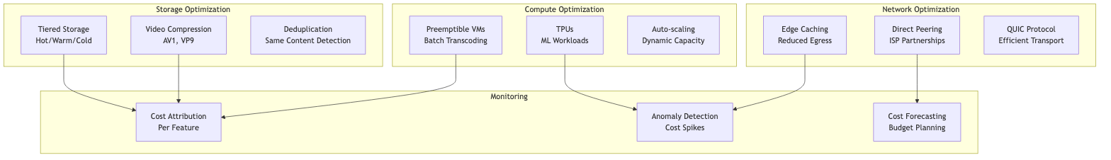 - Preemptible VMs: 80% cost reduction for batch processing